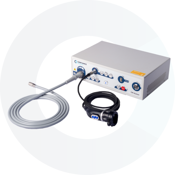 A linha CM-STATION é composta por sistemas integrados desenvolvidos para oferecer qualidade de imagem e praticidade em procedimentos de videocirurgia, garantindo visualização clara e precisa em ambiente de centro cirúrgico.